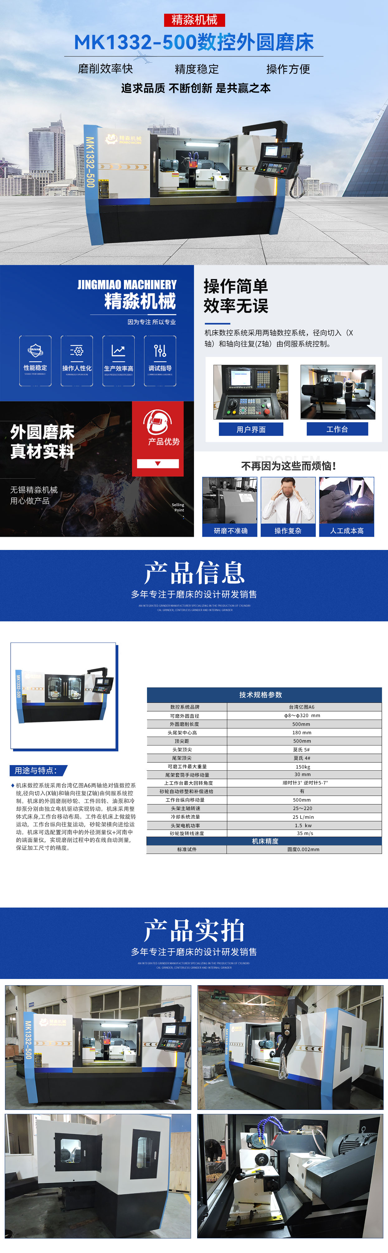 歡迎您訪問無錫市精淼機械科技有限公司官網(wǎng)!本公司主要產品有:磨床,外圓磨床,萬能外圓磨床,數(shù)控外圓磨床,數(shù)控端面外圓磨床,數(shù)控復合磨床,專機定制,高精度外圓磨床 !